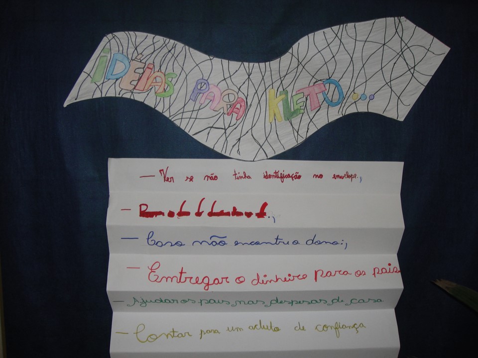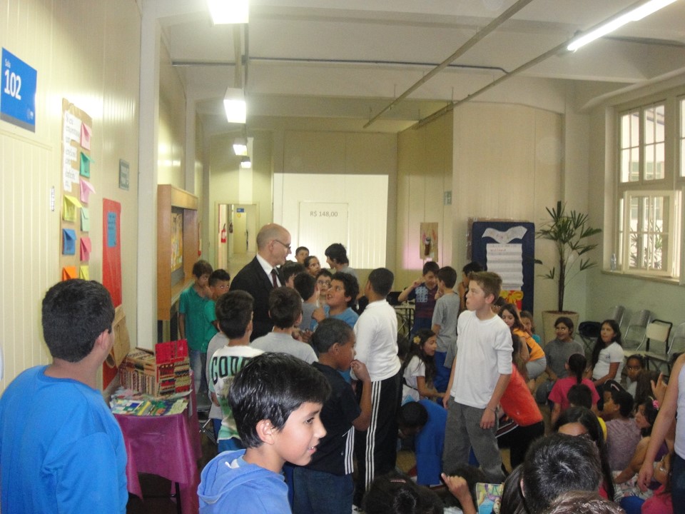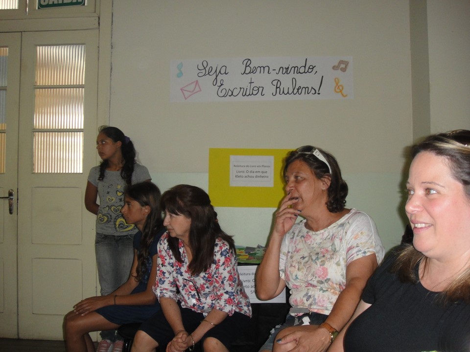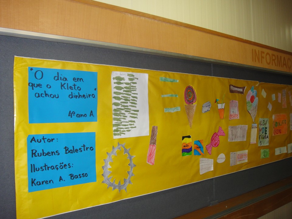 No dia 28 de nov. de 2013, estive palestrando para educandos do 4º e 5º AEF da EMEF Luiz Covolan, sendo recepcionado pela vice-diretora Prof.ª Manuela Coltro da Silva e apresentado às produções feitas pelos educandos sobre “Releituras do livro “O dia em que o Kleto achou dinheiro”. Foram trabalhos maravilhosos, dignos de publicação. O projeto foi desenvolvido por uma equipe de professoras e bibliotecária nominados a seguir: